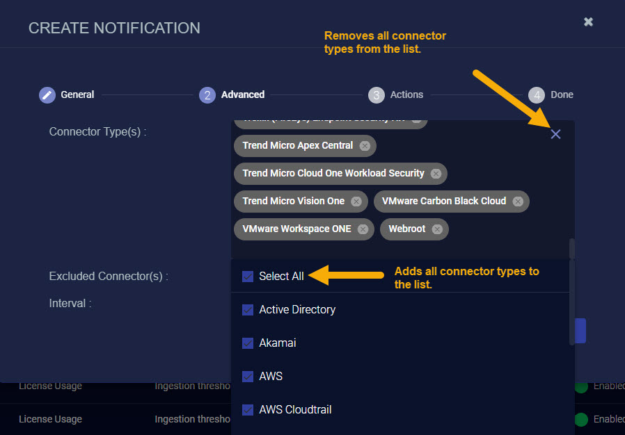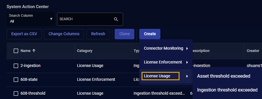 • License Usage – Get notifications when asset usage or ingestion usage exceeds specified thresholds.