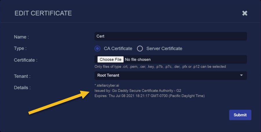 The name you supply here is only used within Stellar Cyber to identify the certificate.