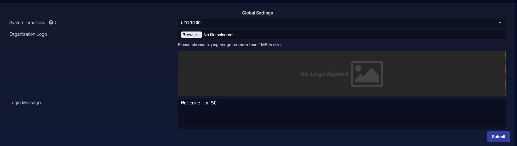 Click Submit to save these settings and immediately make them active.