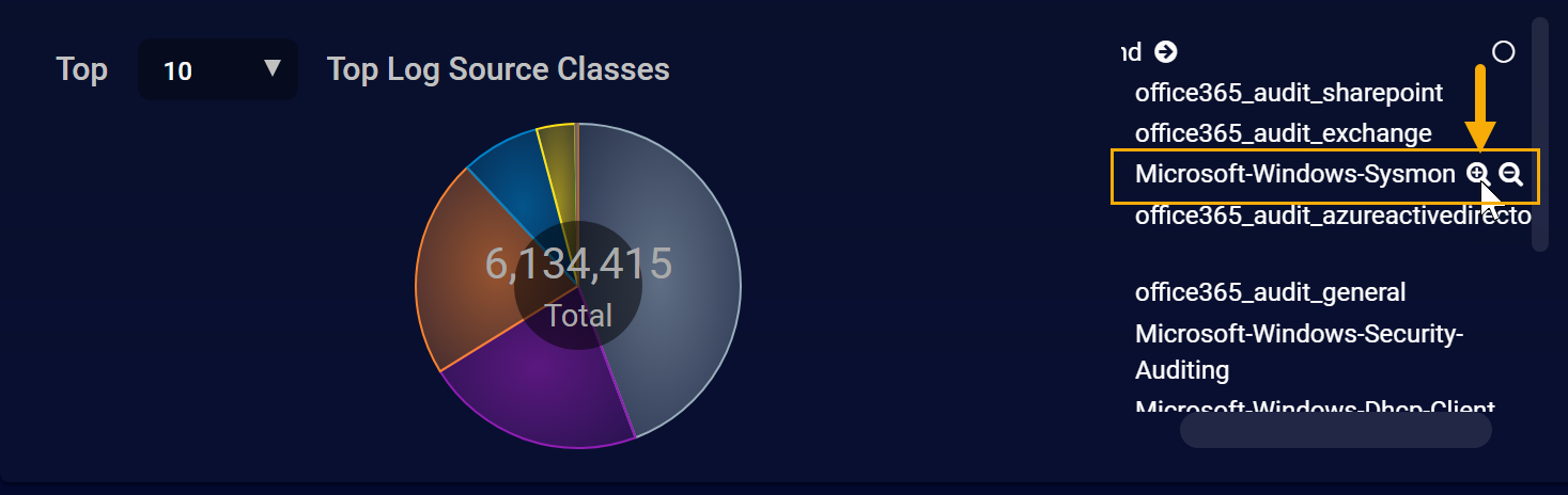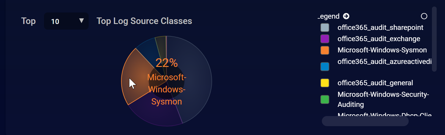 Locate the Top Log Source Classes panel and verify that it includes Microsoft-Windows-Sysmon, as in the figure below: