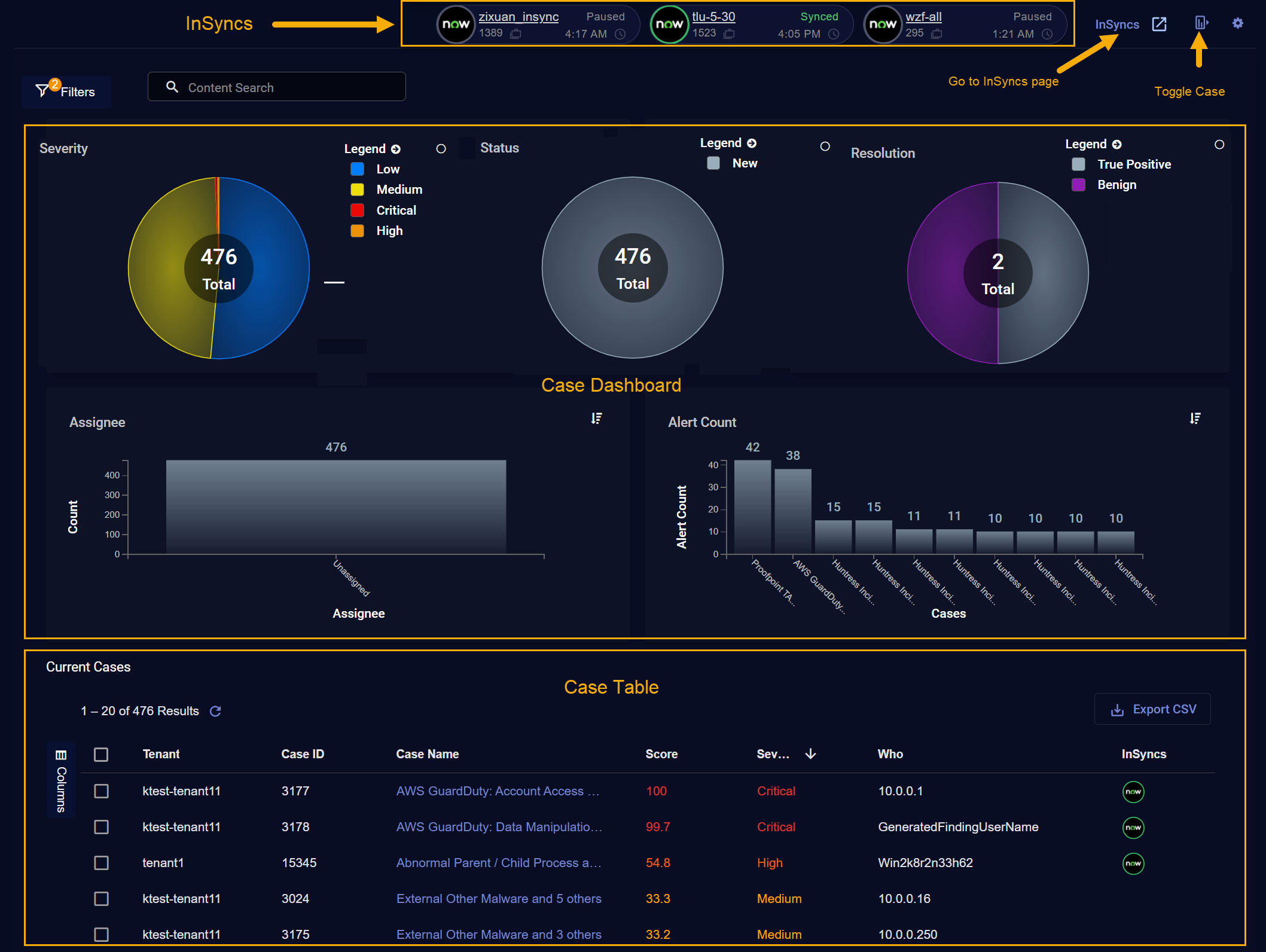 InSync Indicators in the Cases Page