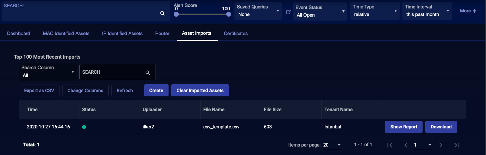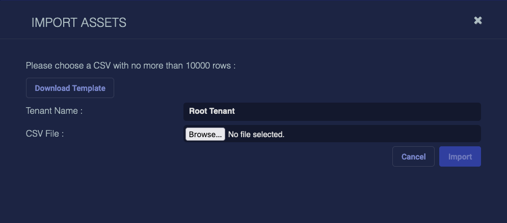 You can import your assets from a CSV file. Stellar Cyber recommends using its template so that the formatting of the file is correct. To import assets: