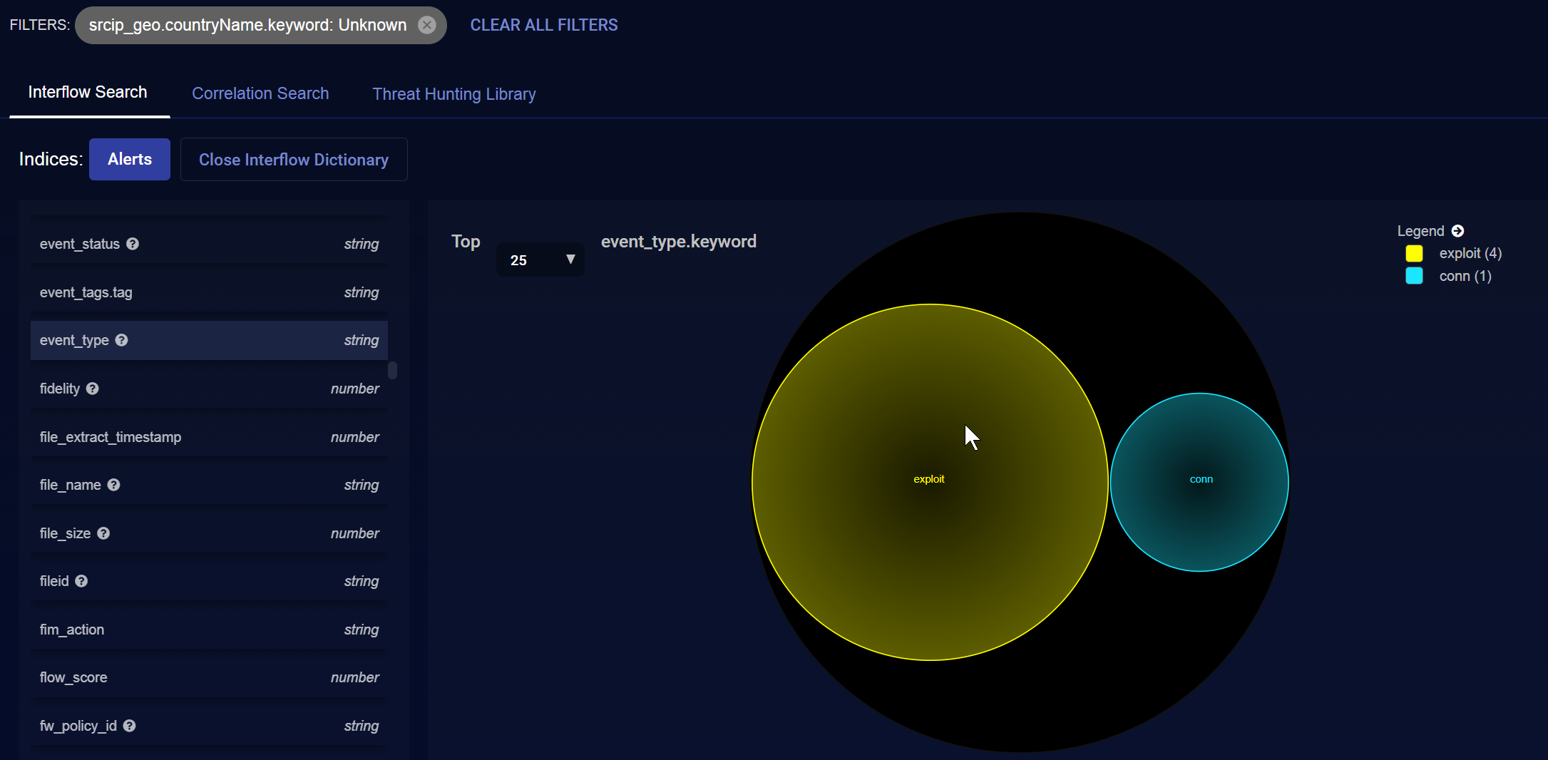 - In our example, there have been four exploits from source IP addresses from an unknown country.