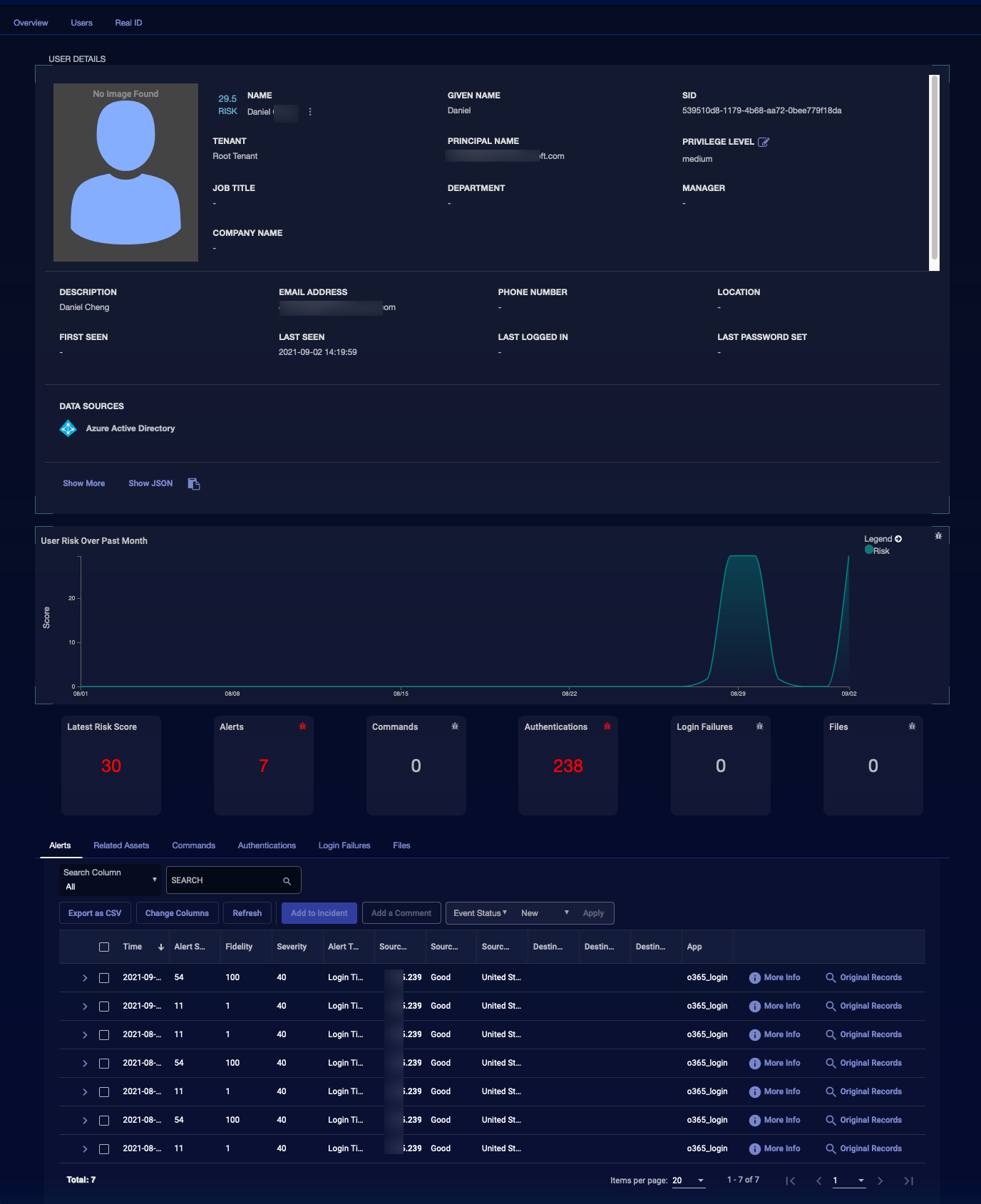 You can see the details Stellar Cyber has collected about the user, including what's been ingested from connected sources.
