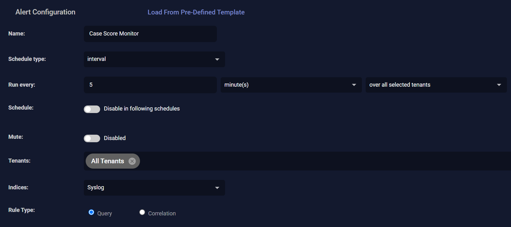 We will create an alert that runs a query every 5 minutes on the Syslog index.