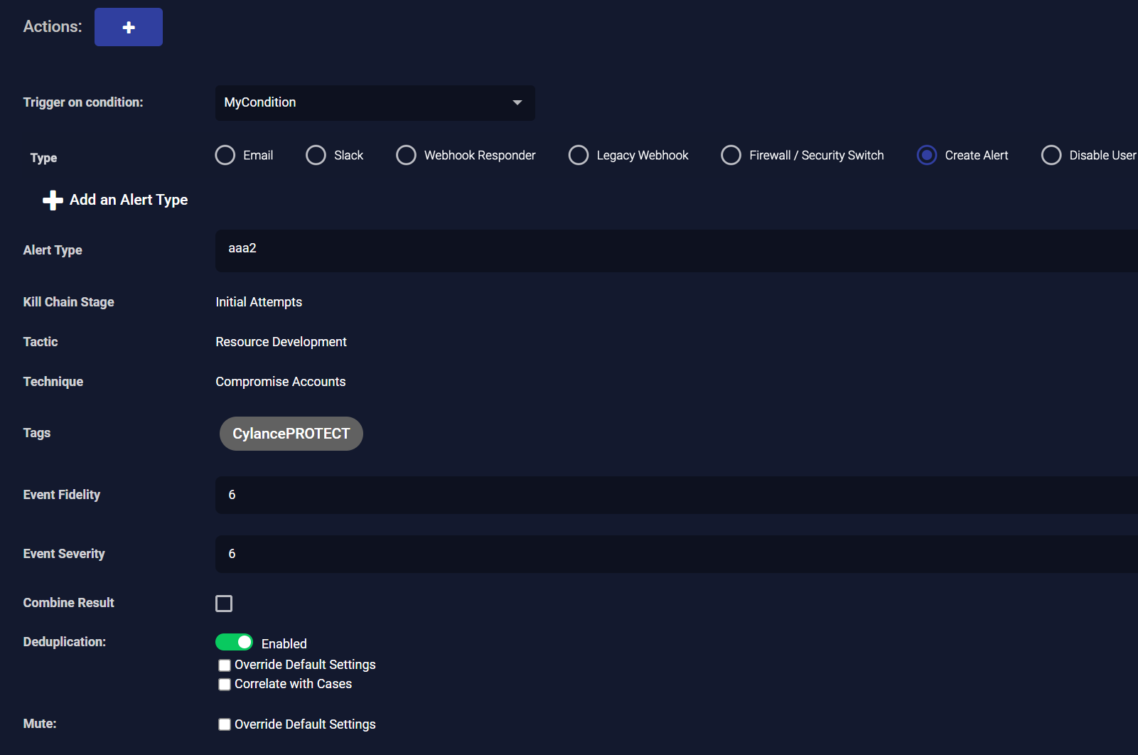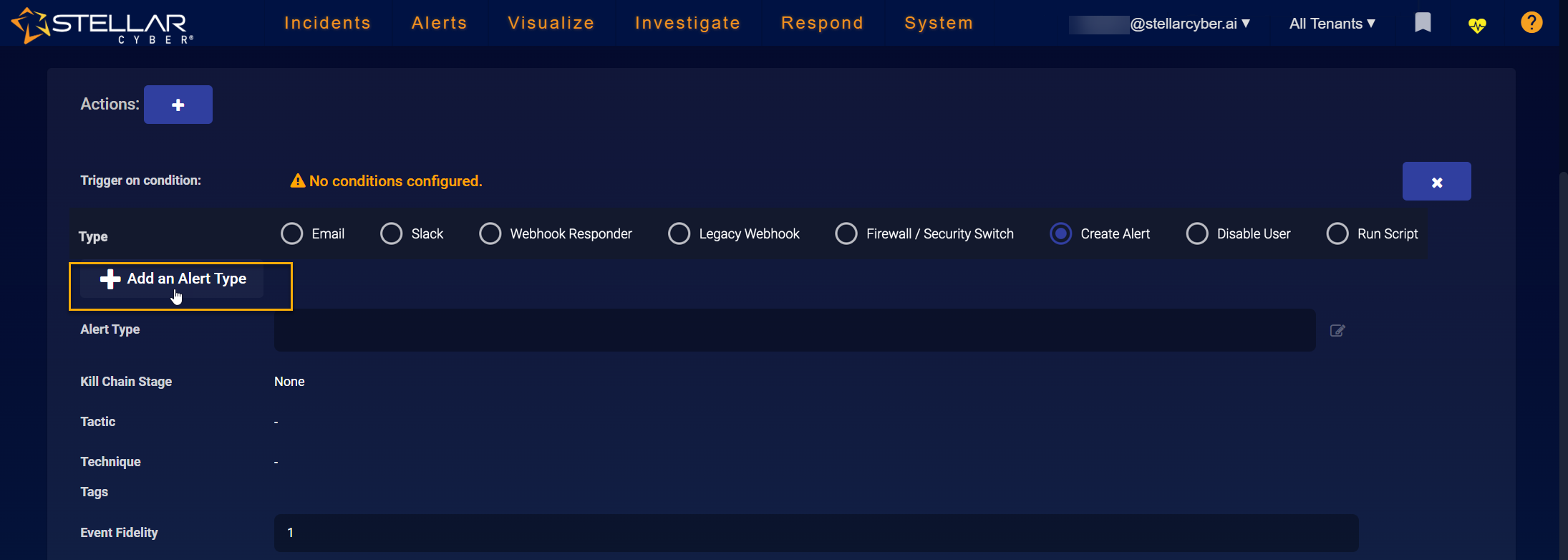 • Check the Correlate with Cases option if you would like Stellar Cyber to create a new case based on the alert.