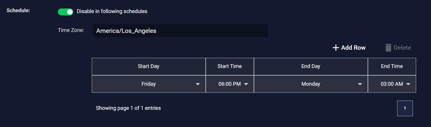 3. Use the table that appears to schedule windows of time where the playbook does not run. For example, in the figure below, we are excluding weekends:
