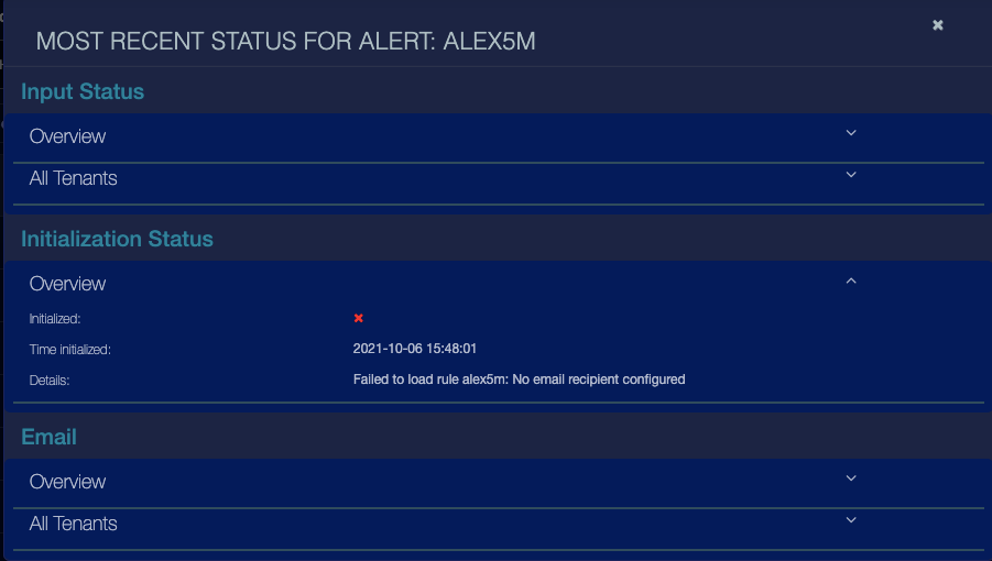 In previous releases, if you chose Per Tenant, you could only send an email as the action. This restriction is no longer in place – you can now use either the Email or Create Alert action when Per Tenant is selected.