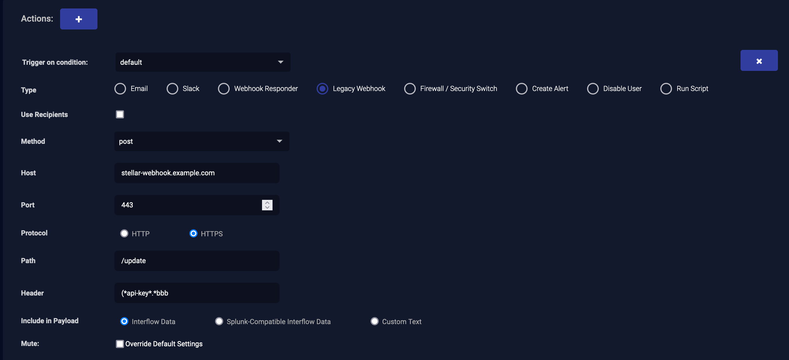 7. Specify whether you want to override the playbook's mute settings and mute just this action.