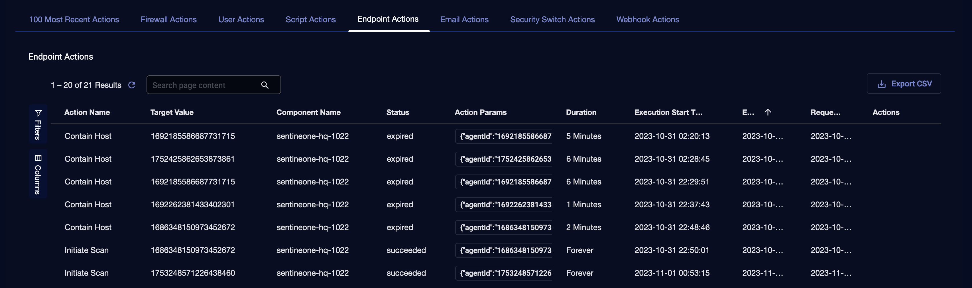 Viewing Endpoint Actions