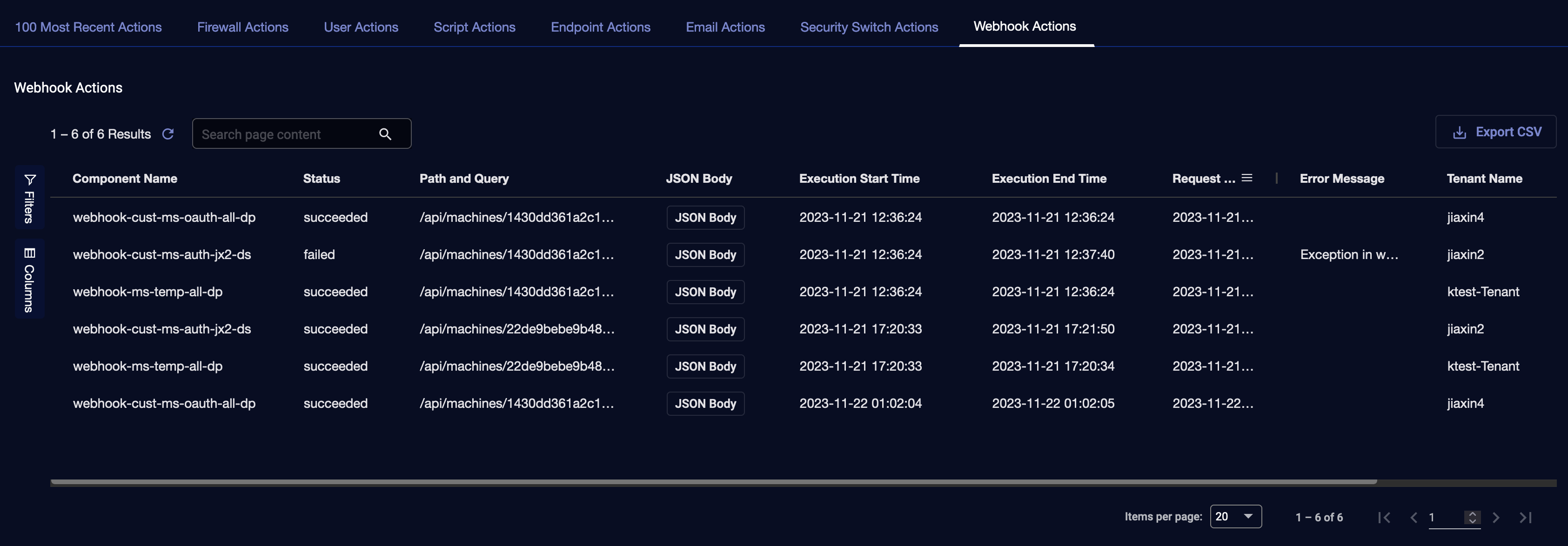 Viewing Webhook Actions