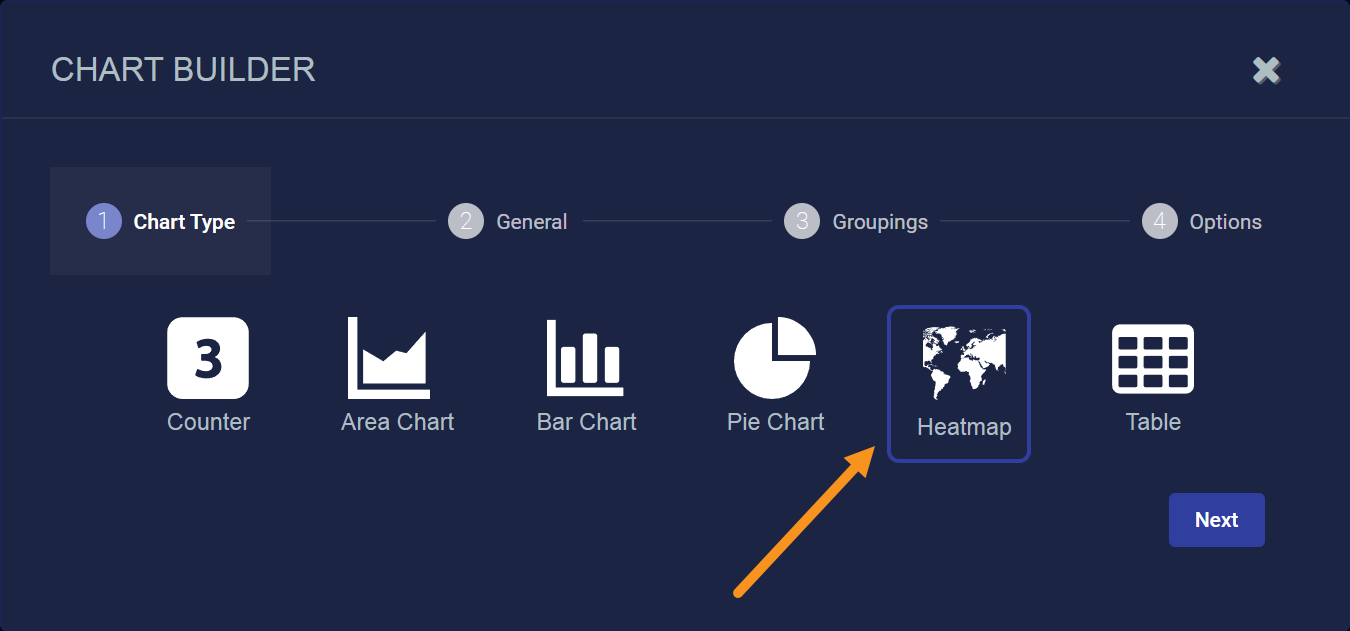 The heatmap widget introduced in the 4.2.0 release is a complete replacement of the one used in previous releases and includes new geolocation capabilities. Note that any existing dashboards using a heatmap chart continue to use the old heatmap widget until you edit the charts manually using the following procedure: