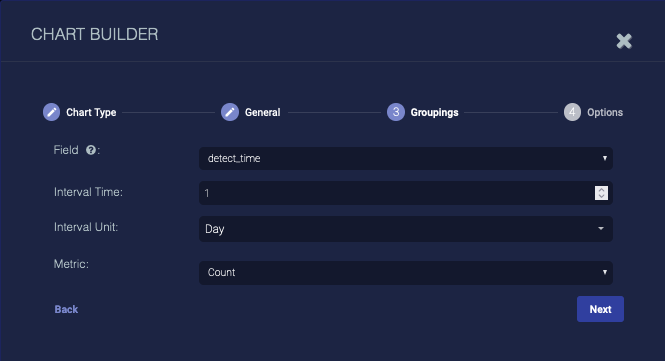 7. Choose the Field to group by. We set detect_time.