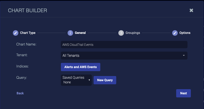 2. Enter the Chart Name. Ours is AWS CloudTrail Events. This field does not support multibyte characters.