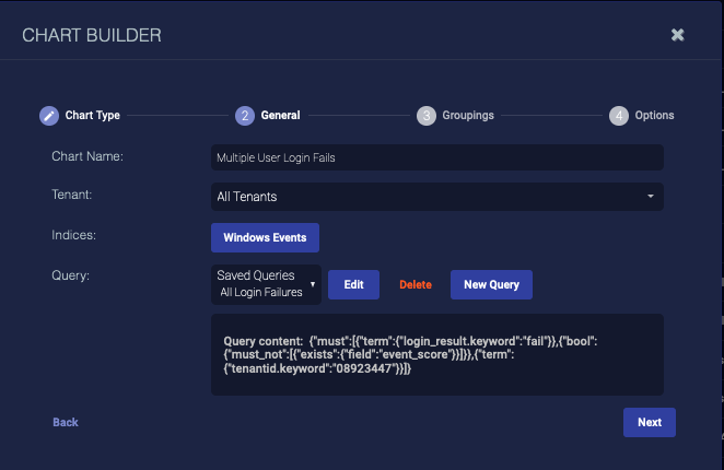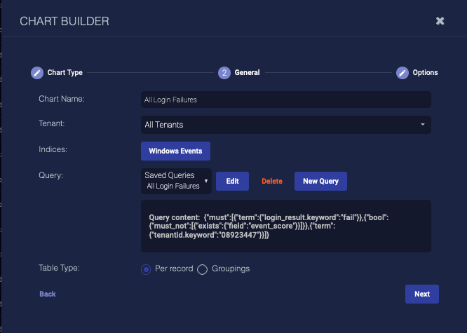 2. Enter the Chart Name. Ours is All Login Failures. This field does not support multibyte characters.