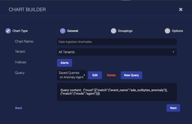2. Enter the Chart Name. Ours is Data Ingestion Anomalies. This field does not support multibyte characters.