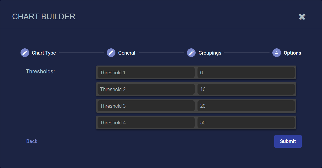 11. Name and set your thresholds. The thresholds specify at what value the heatmap will change the color codes of geopoints shown in the display. This way, geopoints with a higher count are displayed, for example, in red.