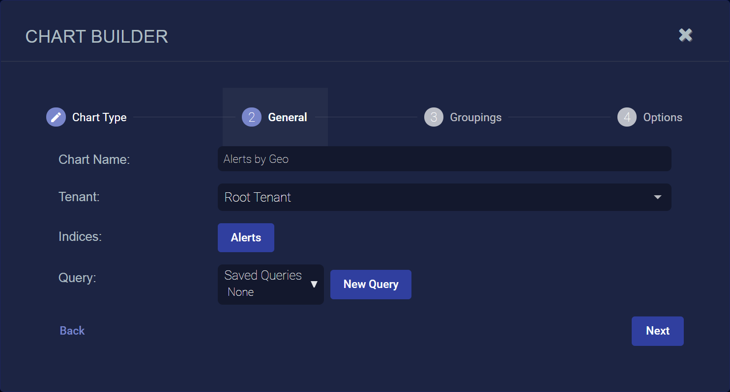 3. Enter the Chart Name. Ours is Alerts by Geo. This field does not support multibyte characters.