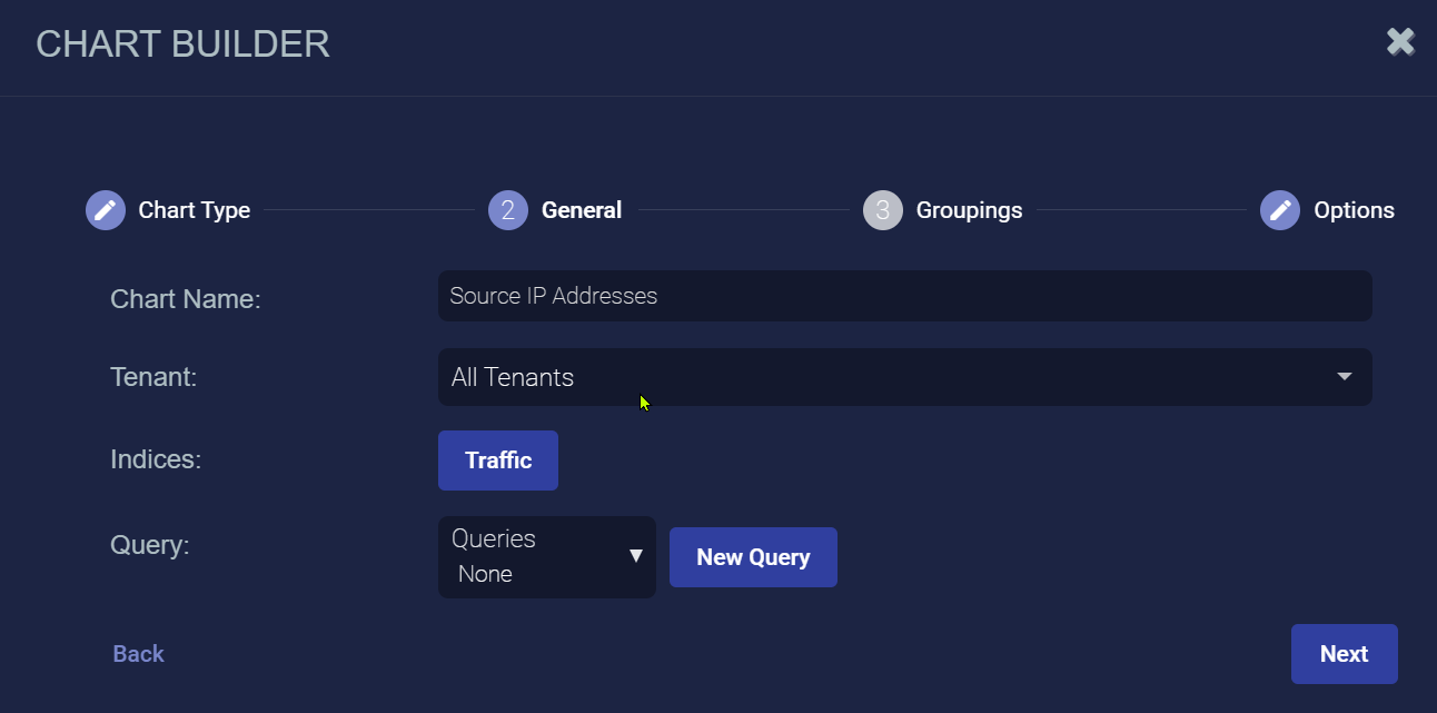 2. Enter the Chart Name. Ours is Source IP Addresses. This field does not support multibyte characters.