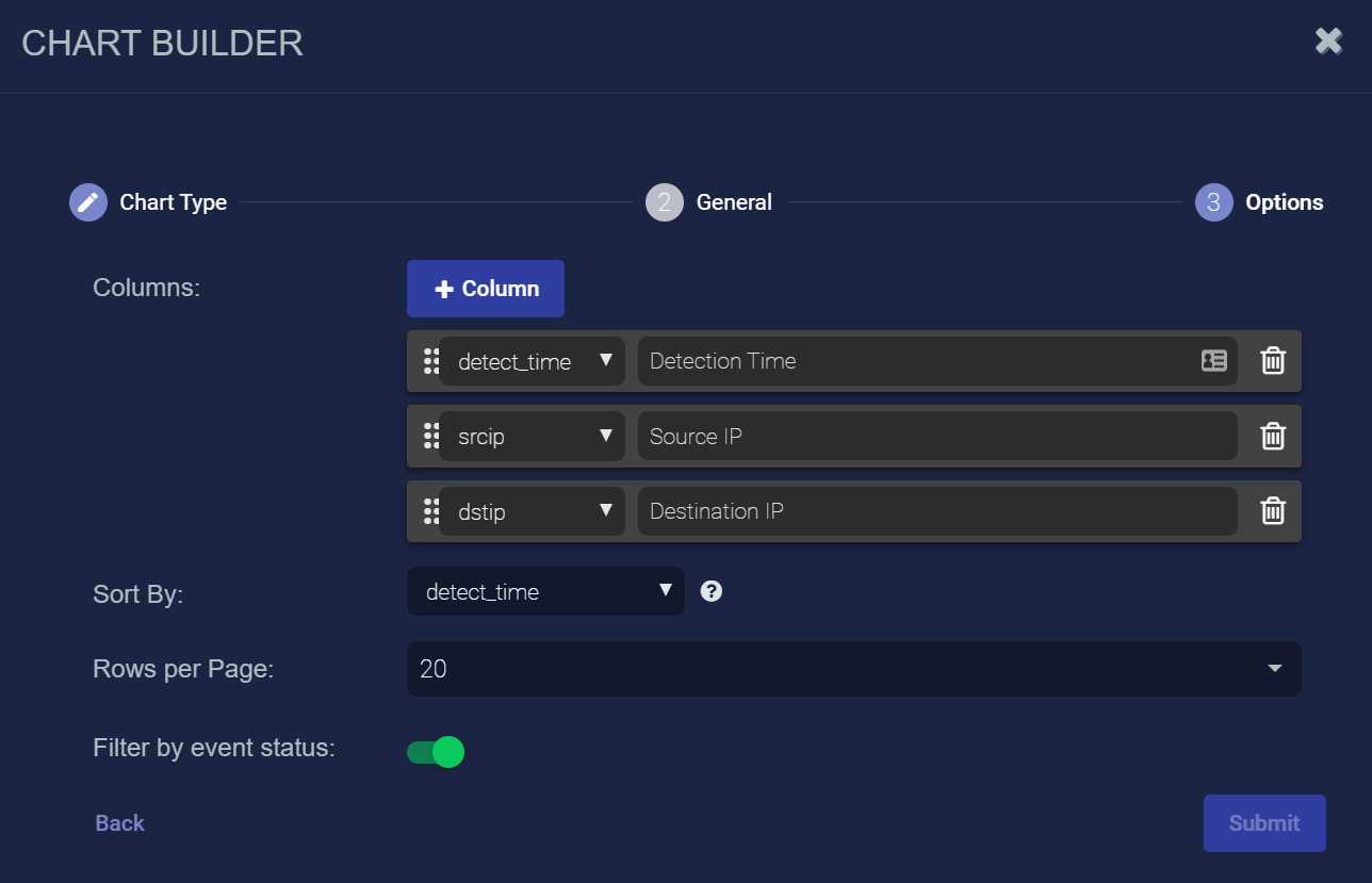 • Predefined chart—one of the charts built in to Stellar Cyber