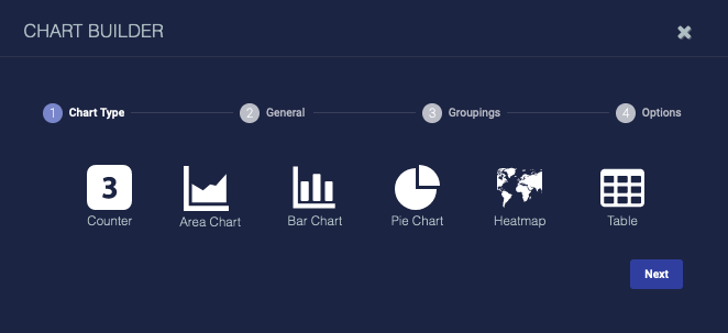 When you click create or edit from the Chart Builder table, or from a Dashboard, the chart builder tool opens.