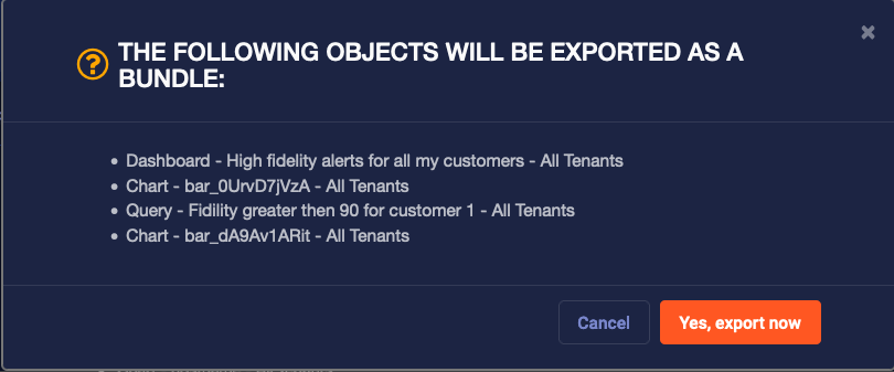 Review what will be exported. Stellar Cyber exports: