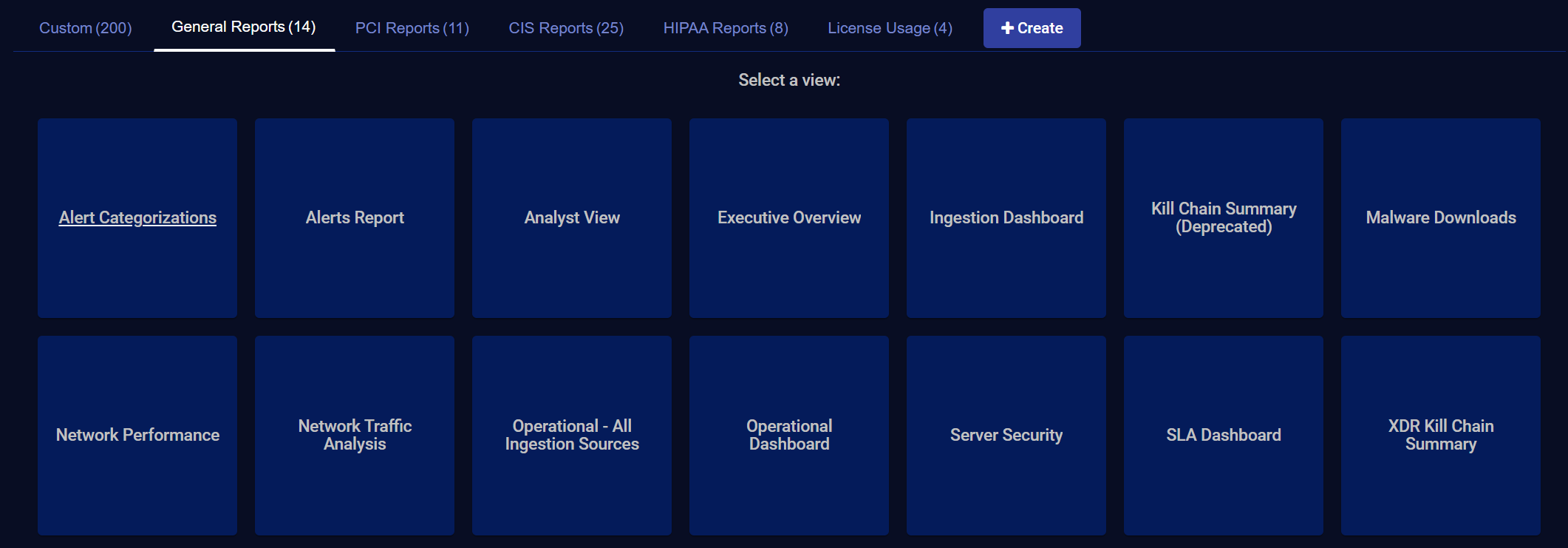 Click on General Reports to see the Select a view screen.