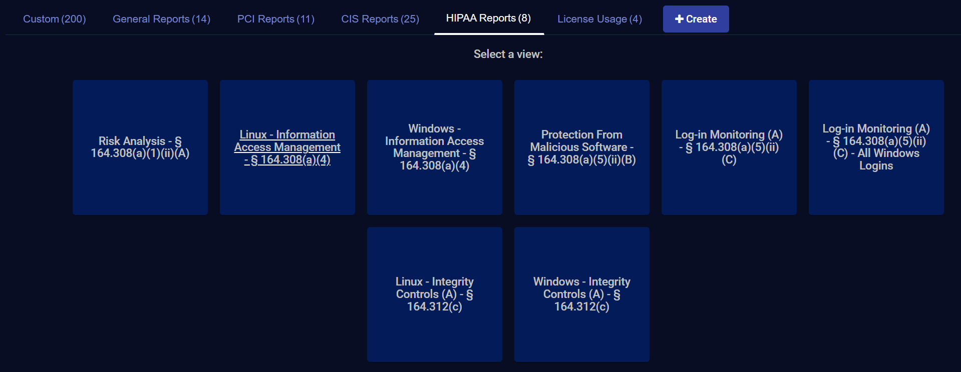 Click on HIPAA Reports to see the Select a view screen.