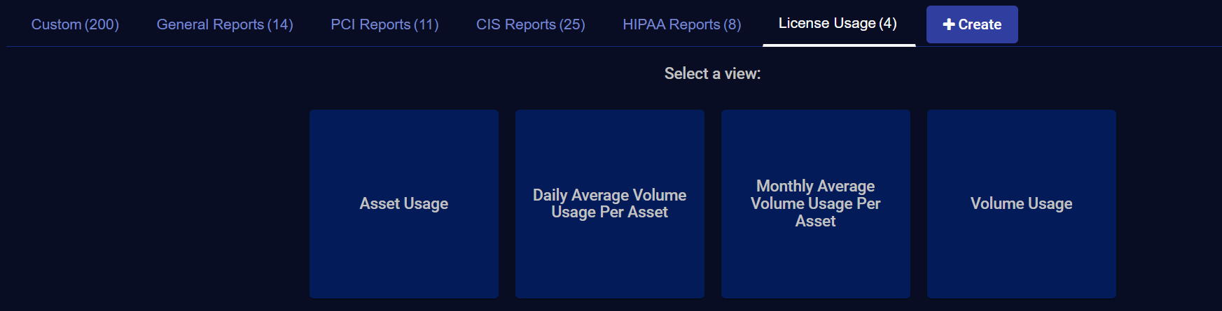 Click on License Usage to see the Select a view screen.