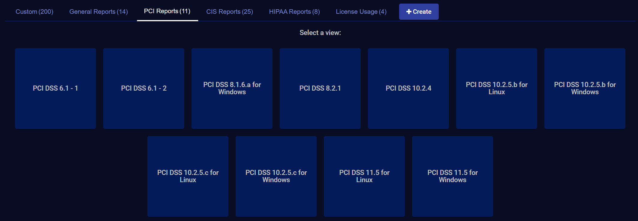 Click on PCI Reports to see the Select a view screen.