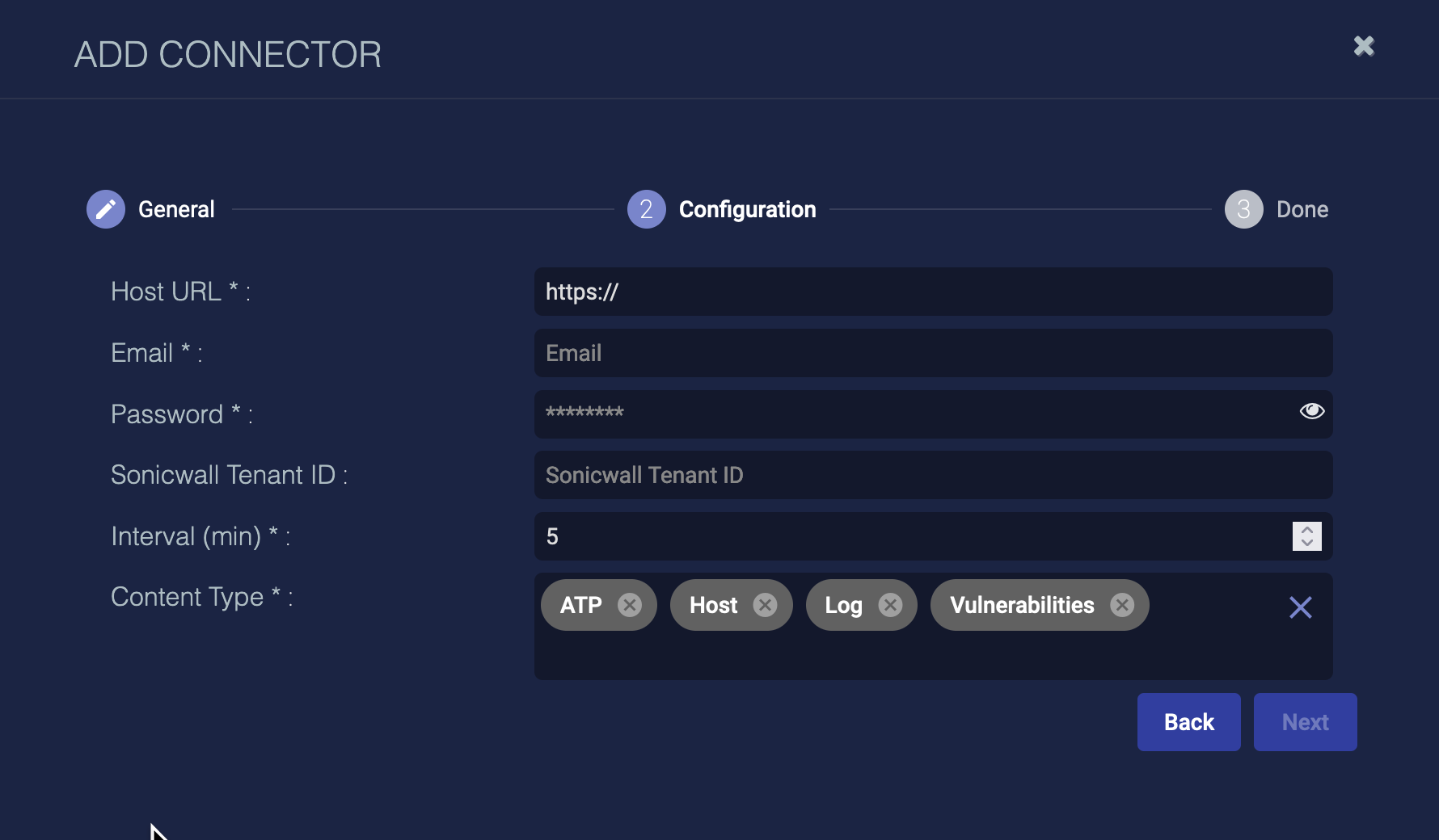 To add a SonicWall Capture Client connector in Stellar Cyber: