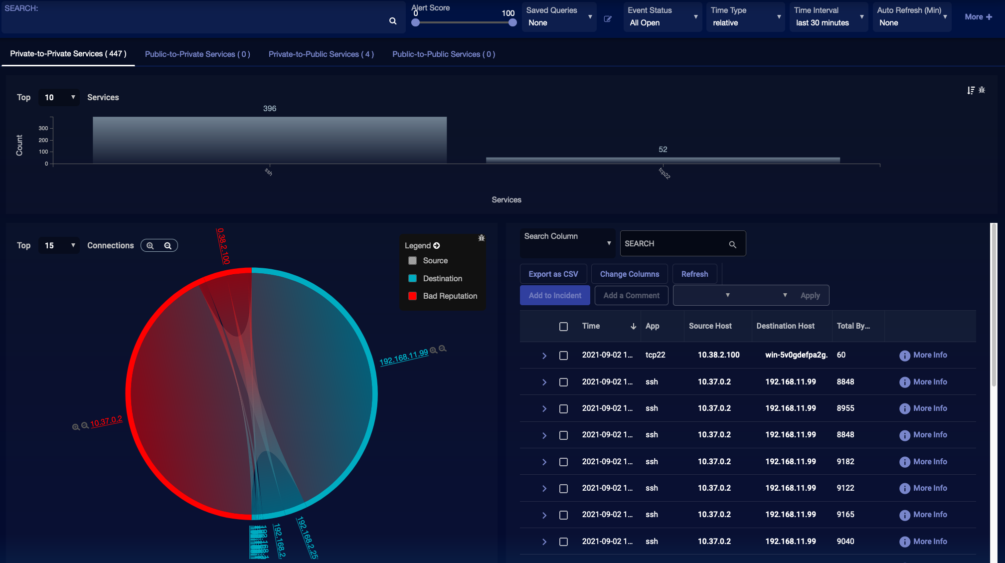 Public-to-Private Services—When a connection starts from a public address to a private address it is placed in this category.