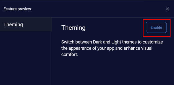 To switch themes from Dark to Light or Light to Dark in the new user interface: