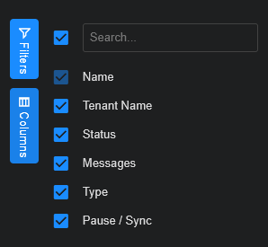 To exit, click Filters again. The configured filters are displayed at the top of the table.