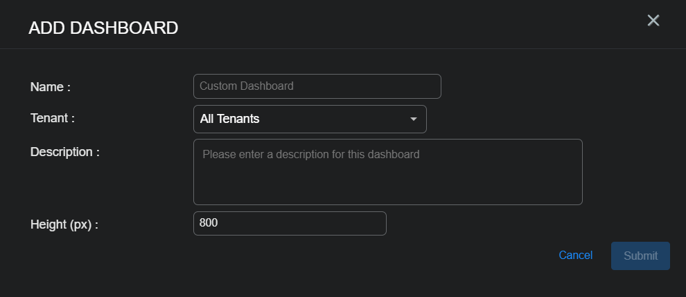 After you've configured a component, select Submit to add it to your dashboard canvas.