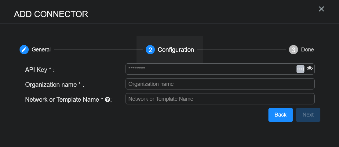 If the network is NOT bound to any template, use the Network Name when you add the connector in Stellar Cyber.