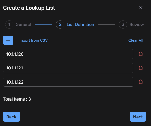 Stellar Cyber performs the following checks when you are creating or editing a list: