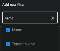 For Tenant Name, select All Tenants or enter the name of a tenant in the Search box.