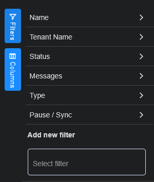 Select Tenant. You can filter by specific tenants, tenant groups, or all tenants.