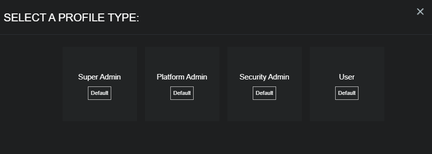Privileges are managed through profiles, which you can create and change. Stellar Cyber provides four default privilege profile templates (which are marked Default in the SELECT A PROFILE TYPE screen):