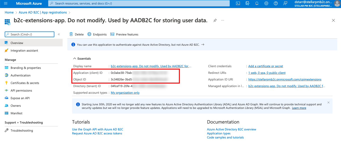 b2c-extensions-app: Object ID