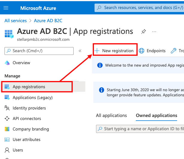 1. Navigate to All services > Azure AD B2C > Select App registrations.
