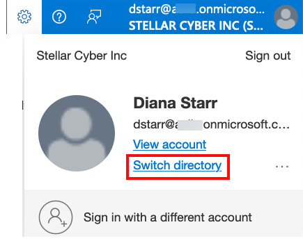 2. Ensure you have selected the Azure AD B2C directory that contains the Microsoft Entra ID (formerly Azure AD) tenant that will be used to access Stellar Cyber. Navigate to the Directory selector using one of the following options:
