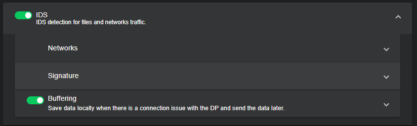 The Sandbox and IDS (Intrusion Detection System) features can only be enabled if Network Traffic is enabled and if their corresponding licenses are enabled.