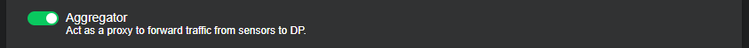Enable this for the sensor to act as a data aggregator for other sensors. The modular aggregator forwards aggregated traffic to the DP configured on the modular sensor. It also uses the receivers configured for the modular sensor, so you don't have to configure an aggregator profile.