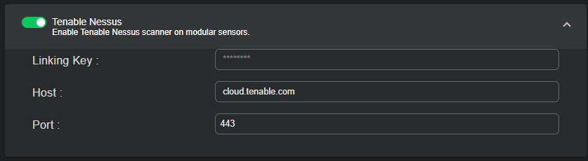 Locate the section labeled Tenable Nessus, and toggle the feature on.
