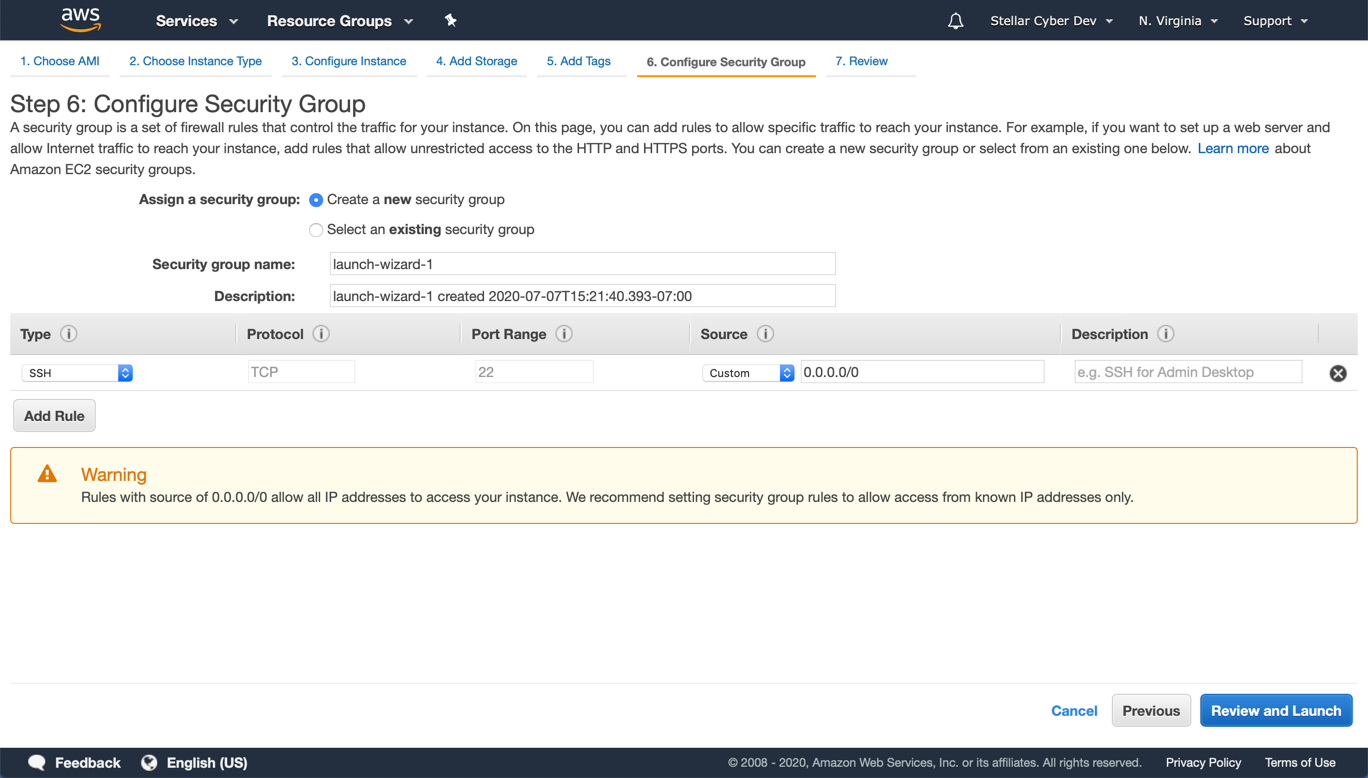 - Contact Stellar Cyber support (support@stellarcyber.ai) for access to the AMI. You must provide: