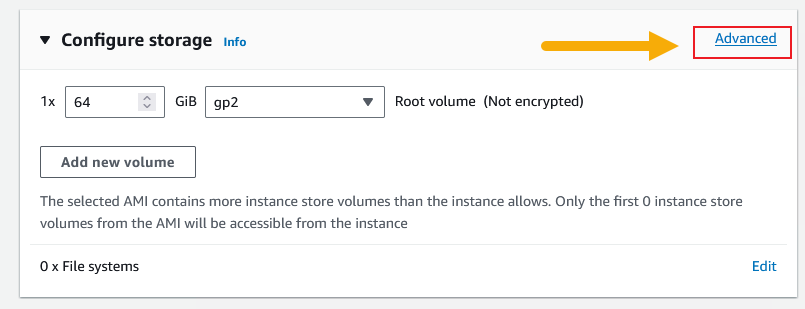 Click the Advanced button in the Configure Storage panel.