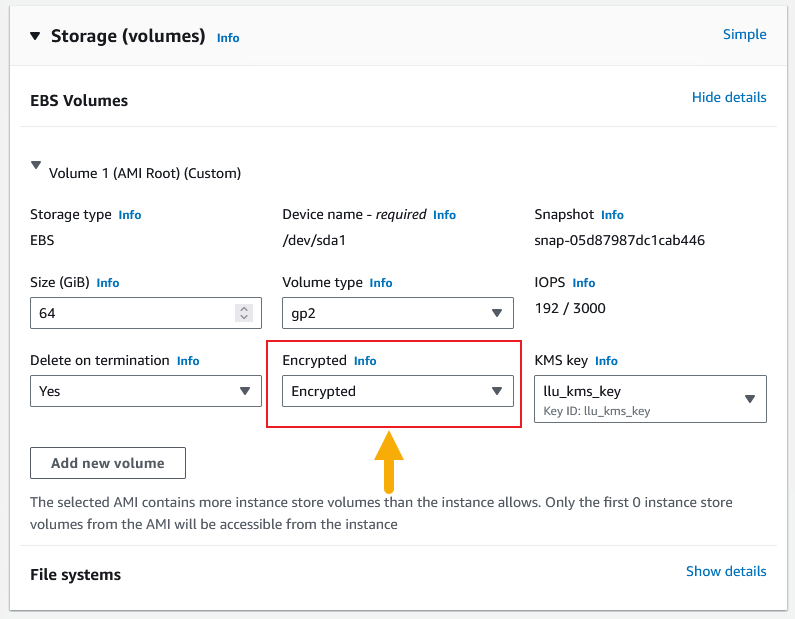 As an option, you can encrypt your storage volume as follows: