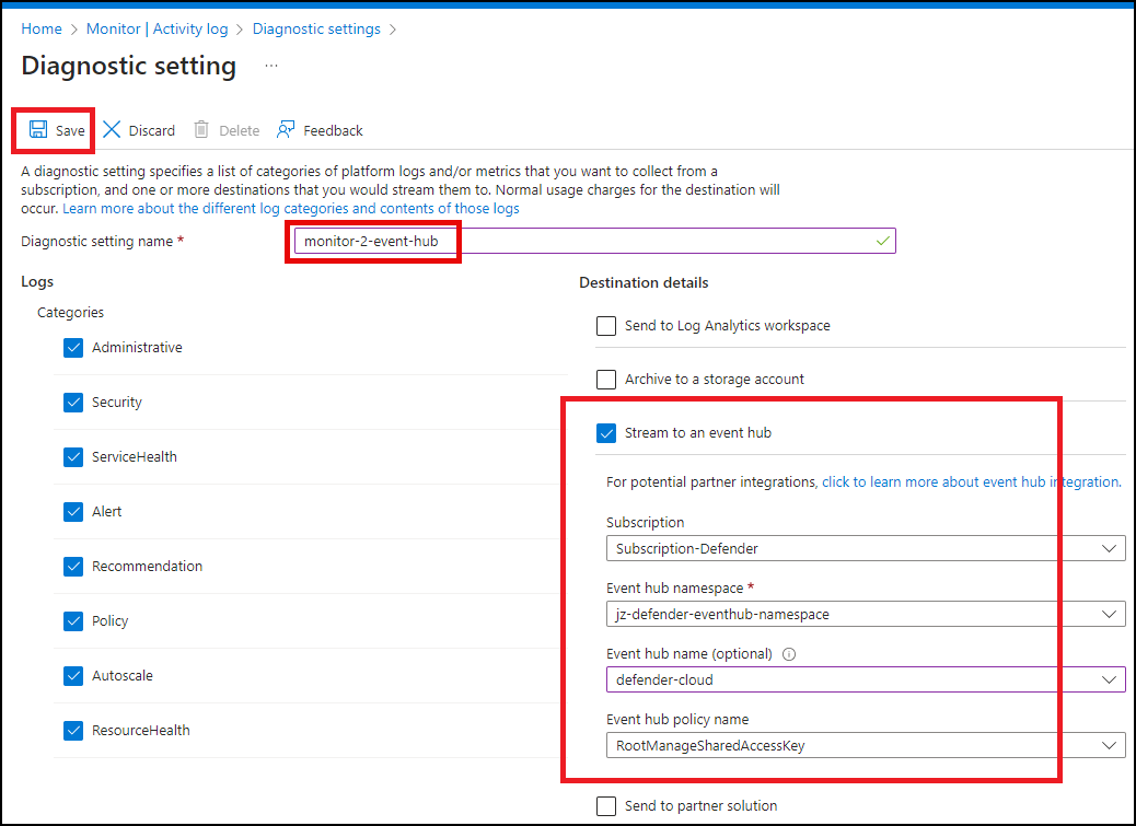 To stream logs to an Event Hub, refer to the Microsoft documentation.